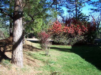 It looks so beautiful outside today...crisp and clear...the sun is shining brightly among the shadows....I snapped a few photos of the primrose that I spotted coming up in the flower garden...and the outrageous Quince bush that is just a mass of color...the gigantic Quince is over 40 years old !!!